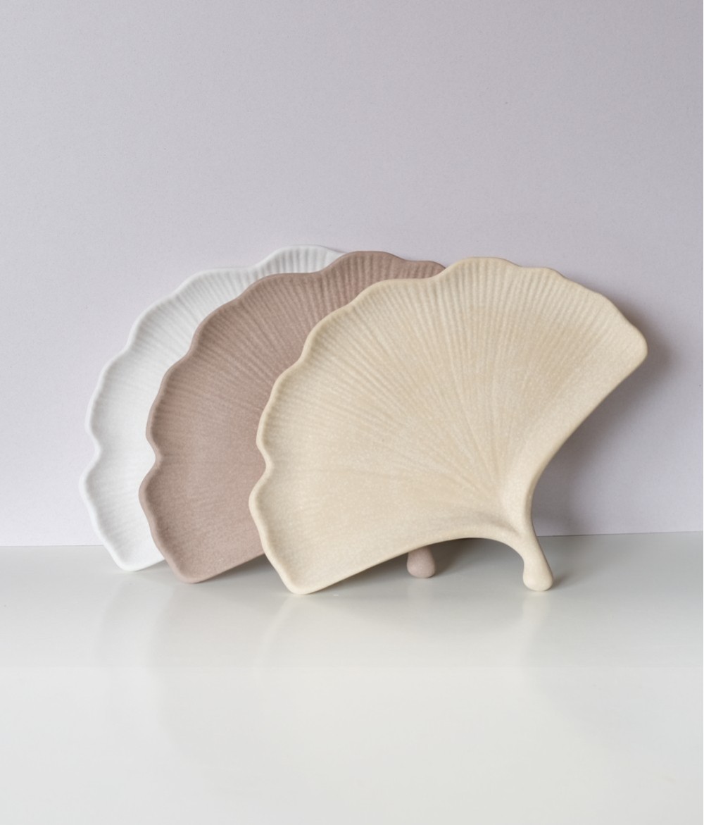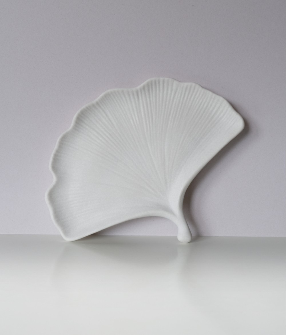 Vassoio a forma di foglia di Ginkgo biloba, pianta dal profondo significato e simbolo di resilienza ancestrale che si rinnova nel tempo. Utilizzabile come elemento di arredo e come portagioie. Perfetto anche per l'utilizzo come bomboniera per un importante evento, come augurio di lunga vita.