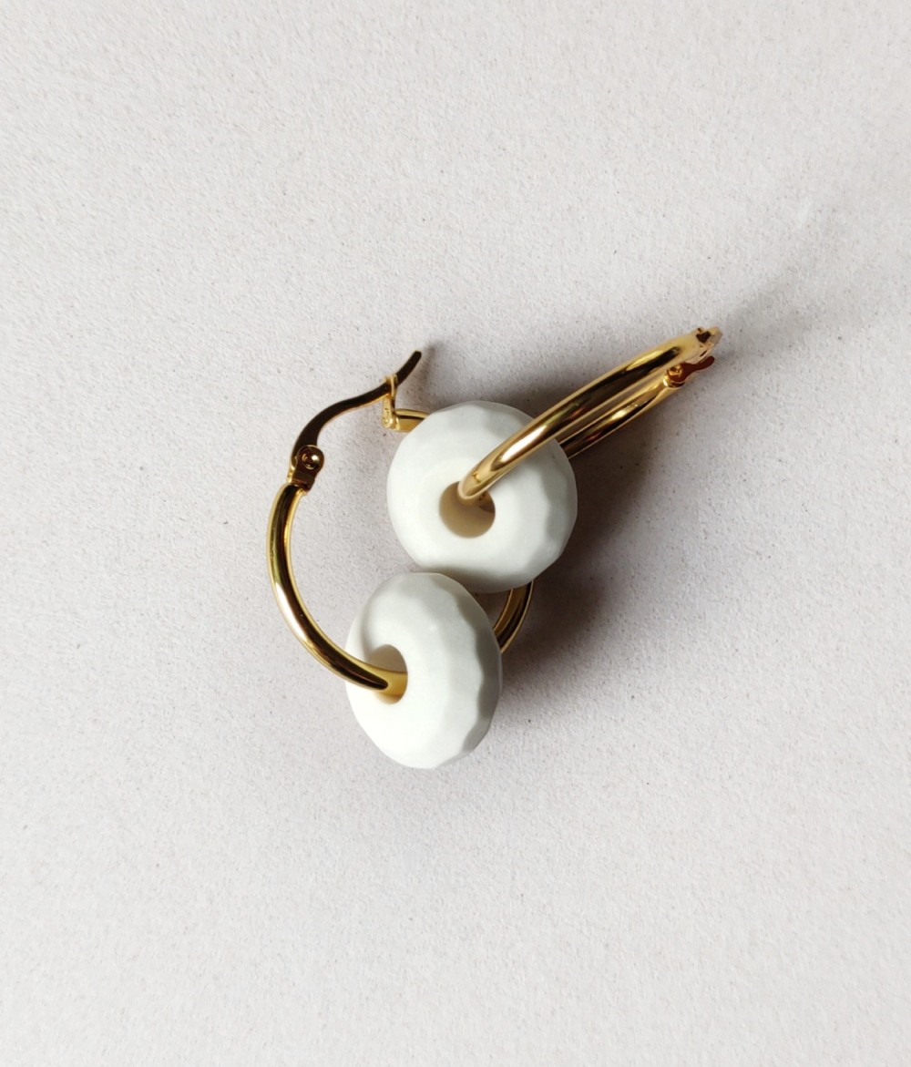 Orecchini in ceramica ecologica e acciaio inox dorato.