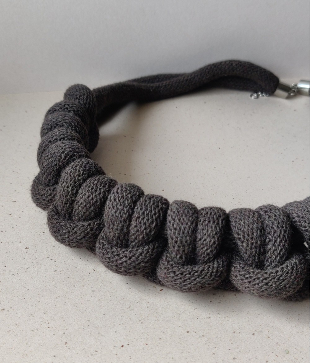 Collana in cotone riciclato della collezione "nodes.". Componenti in acciaio.