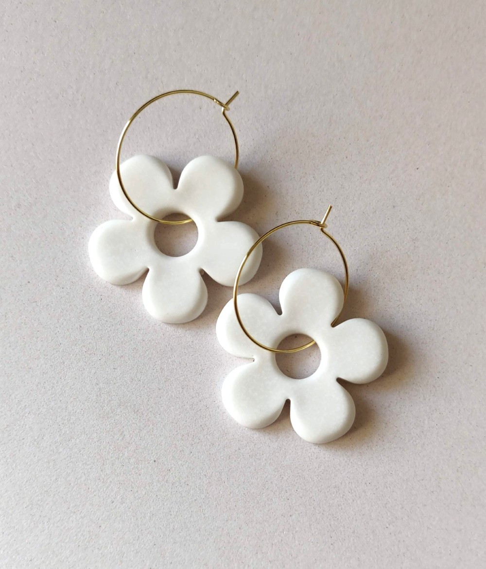 Orecchini in acciaio dorato con ciondolo rigorosamente fatto a mano in ceramica ecologica.