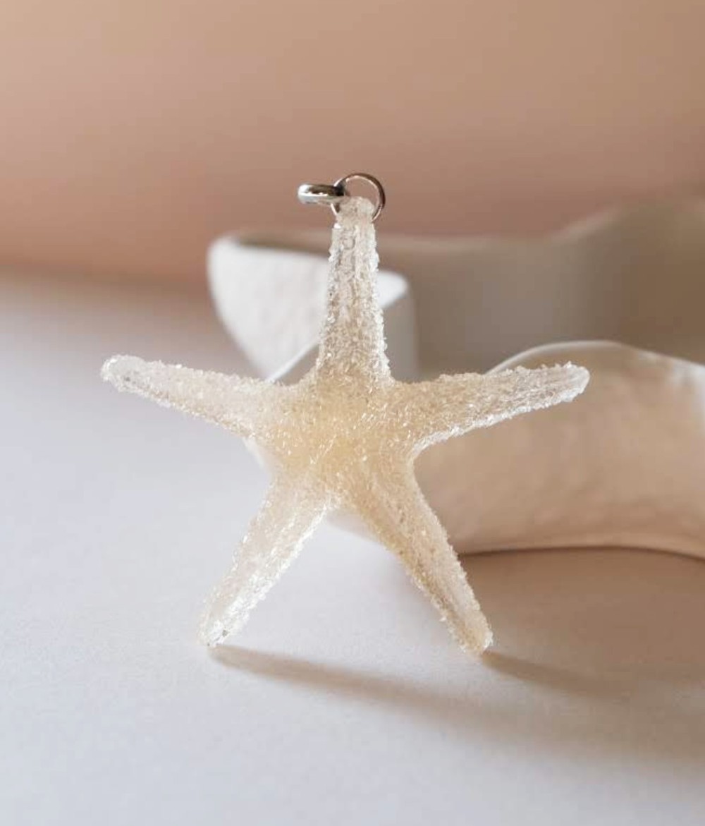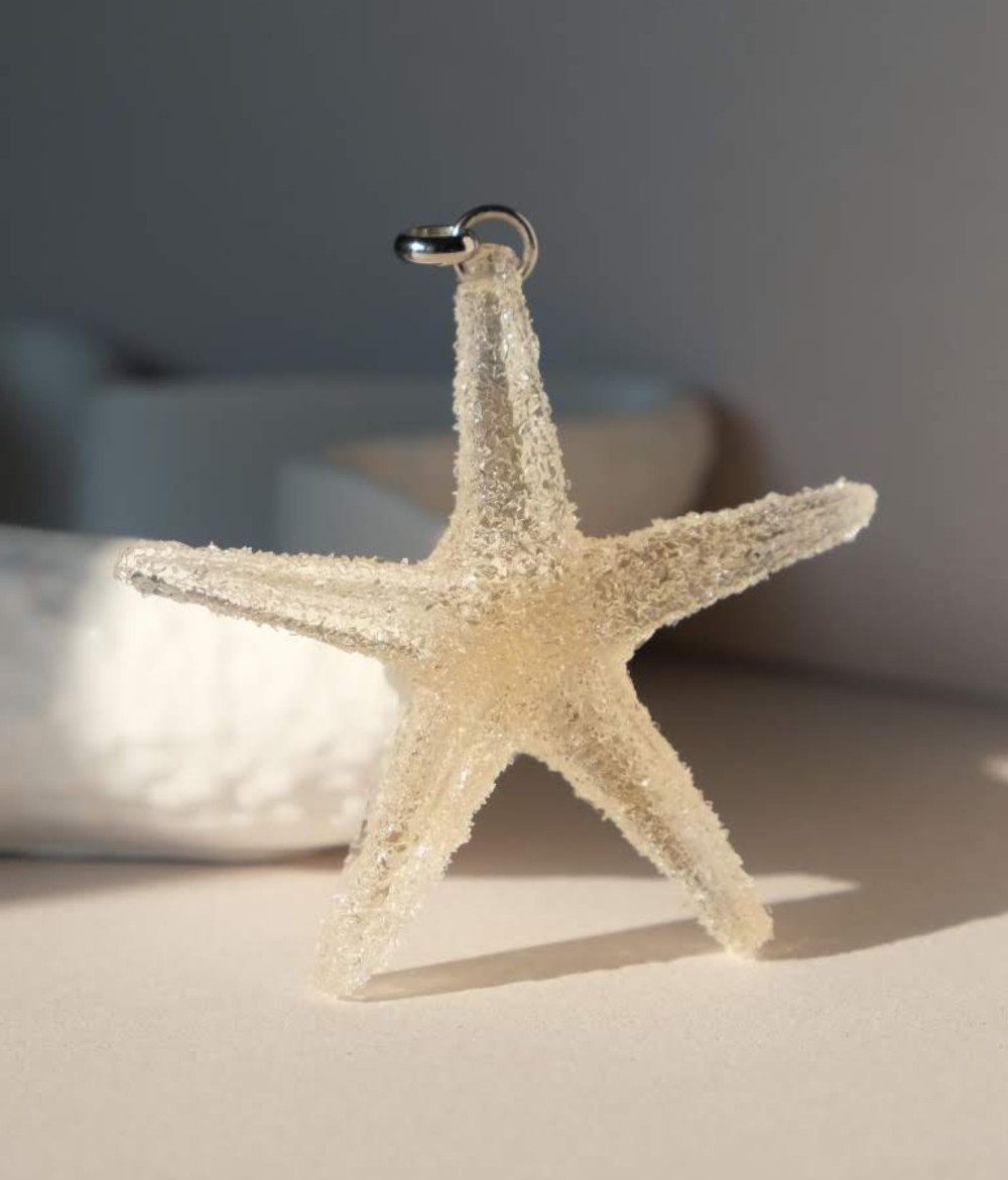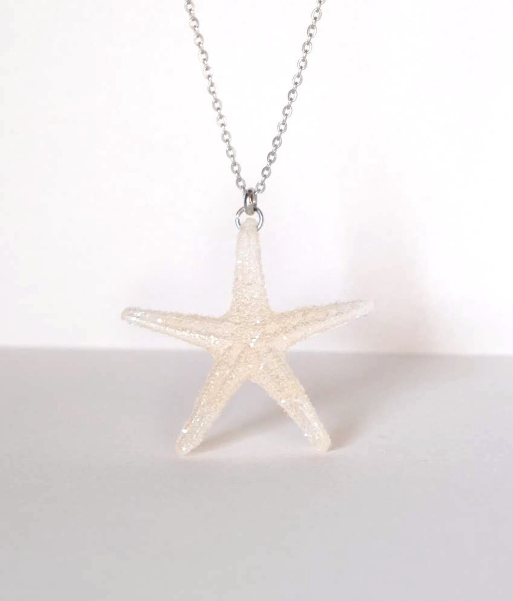 Una collana unica, con un ciondolo a forma di stella marina in resina, dai colori delicati ed eleganti e dalla finitura semitrasparente.