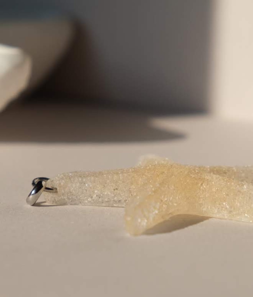 La sua superficie sfaccettata cattura e riflette la luce, facendo brillare il ciondolo naturalmente, come una stella marina che scintilla dolcemente al contatto con le acque cristalline del mare.